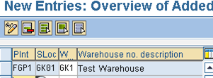 Click on new entries and assign Plant, Storage Location and Warehouse number