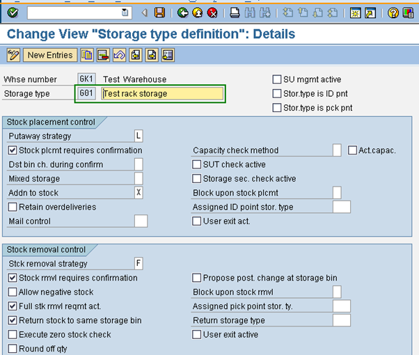 New storage type also can be created as per the requirement. Find below screen for new storage type