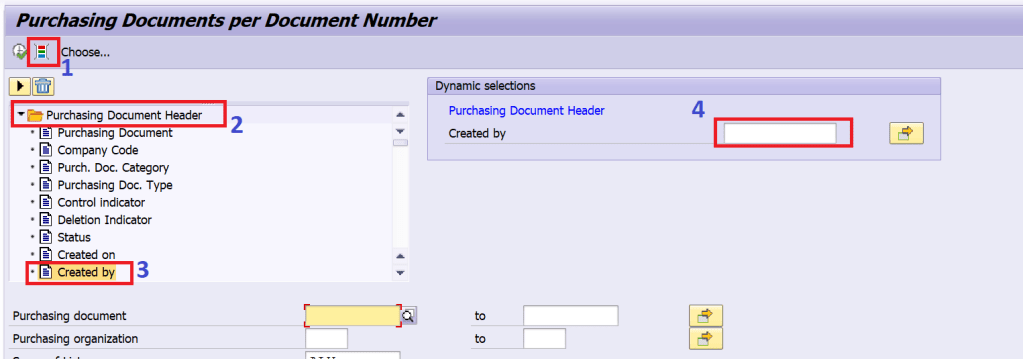 - Now, you can input the required User ID(s). And then click on Execute button to get the Purchase Orders which are created by specific user