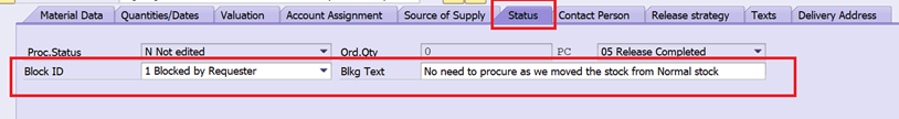 - Update the block indicator in PR – ME52N