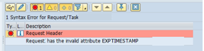 If you get error Request <Request ID> has the invalid attribute EXPTIMESTAMP”, you will need to double click on the transport, and go to the properties tab. There you select the row with “EXPORT_TIMESTAMP” and delete it. Do not forget to press save.