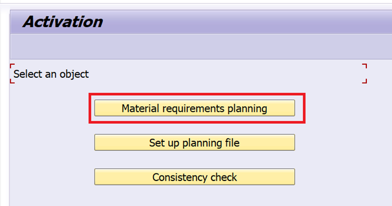 SPRO –> Materials Management –> Consumption-Based Planning –> Planning –> Activate Material Requirements Planning